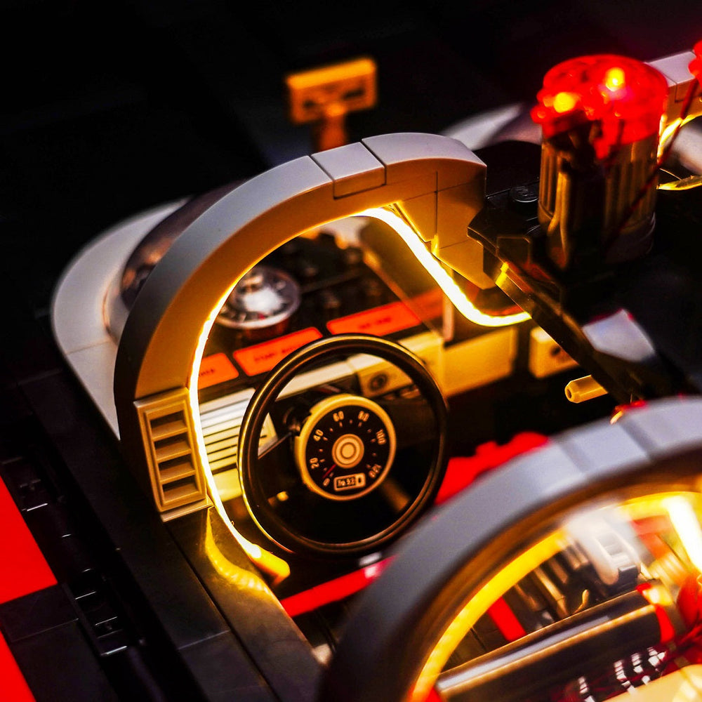 • Technik mit Stil: Rote LED-Lichtstreifen umrahmen die Karosserie und betonen die einzigartigen Linien des 1966er Designs. Sie fangen jenen speziellen „Retro-Futurismus“ ein – eine perfekte Mischung aus klassischer Ästhetik und der Sci-Fi-Fantasie vergangener Tage.