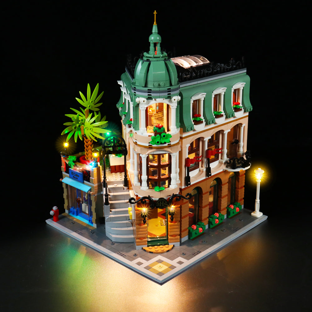 Wenn Sie das Boutique Hotel (10297) errichten, bauen Sie nicht nur ein Gebäude – Sie checken ein in die glamouröse Welt der Belle Époque. Es ist eine Hommage an die europäische Architekturgeschichte. Doch erst, wenn die Dämmerung einsetzt (und die Gäste zum Dinner erscheinen), entfaltet dieses architektonische Juwel seinen vollen Charme. Mit diesem LED-Beleuchtungs-Set von Bricklightlab lassen Sie das goldene Zeitalter wiederauferstehen.